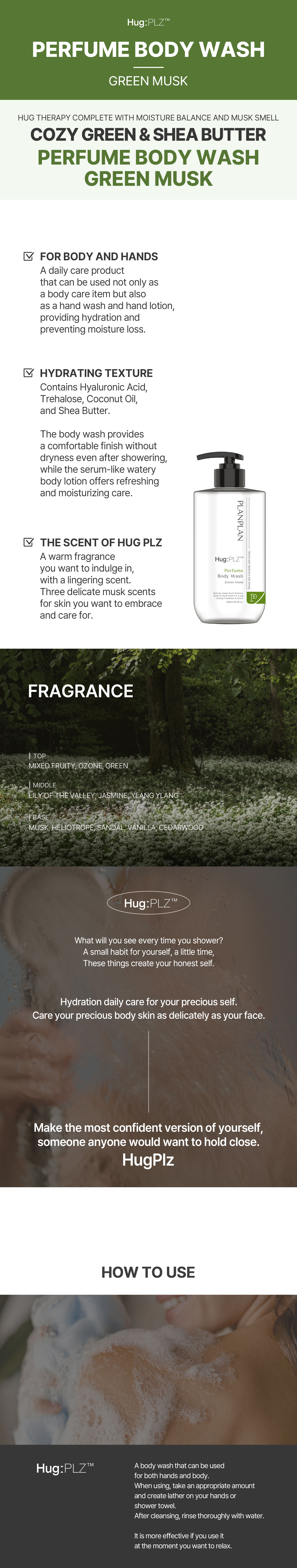 #HugPlz™ Perfume Body Wash [GREEN MUSK] 500ml